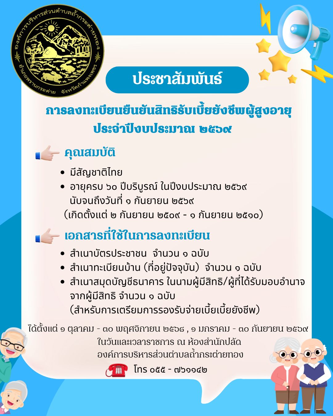 การลงทะเบียนยืนยันสิทธิรับเบี้ยยังชีพผู้สูงอายุ ประจำปีงบประมาณ 2569